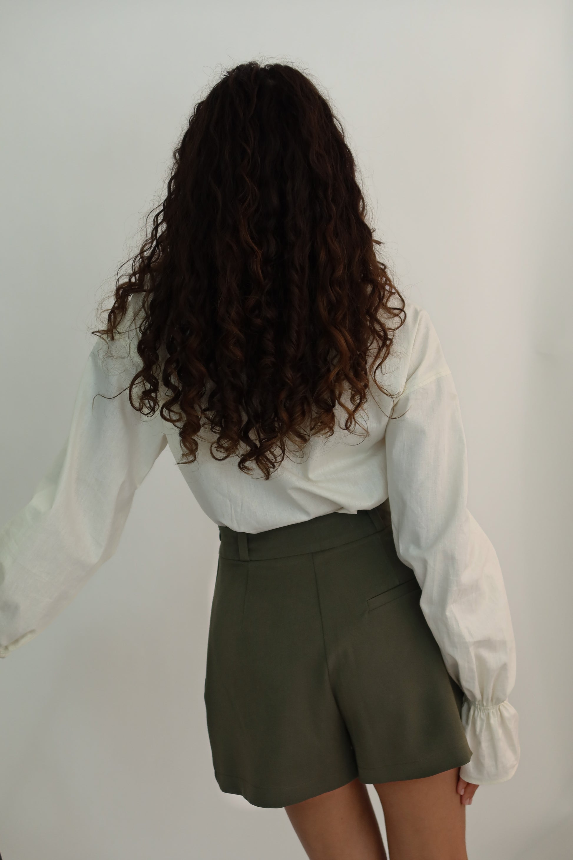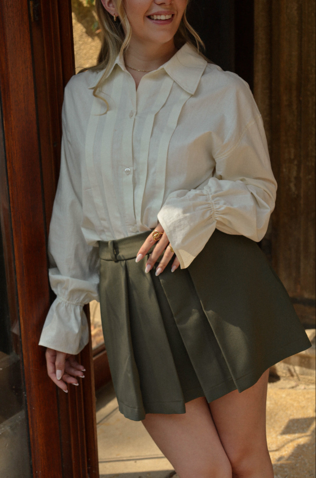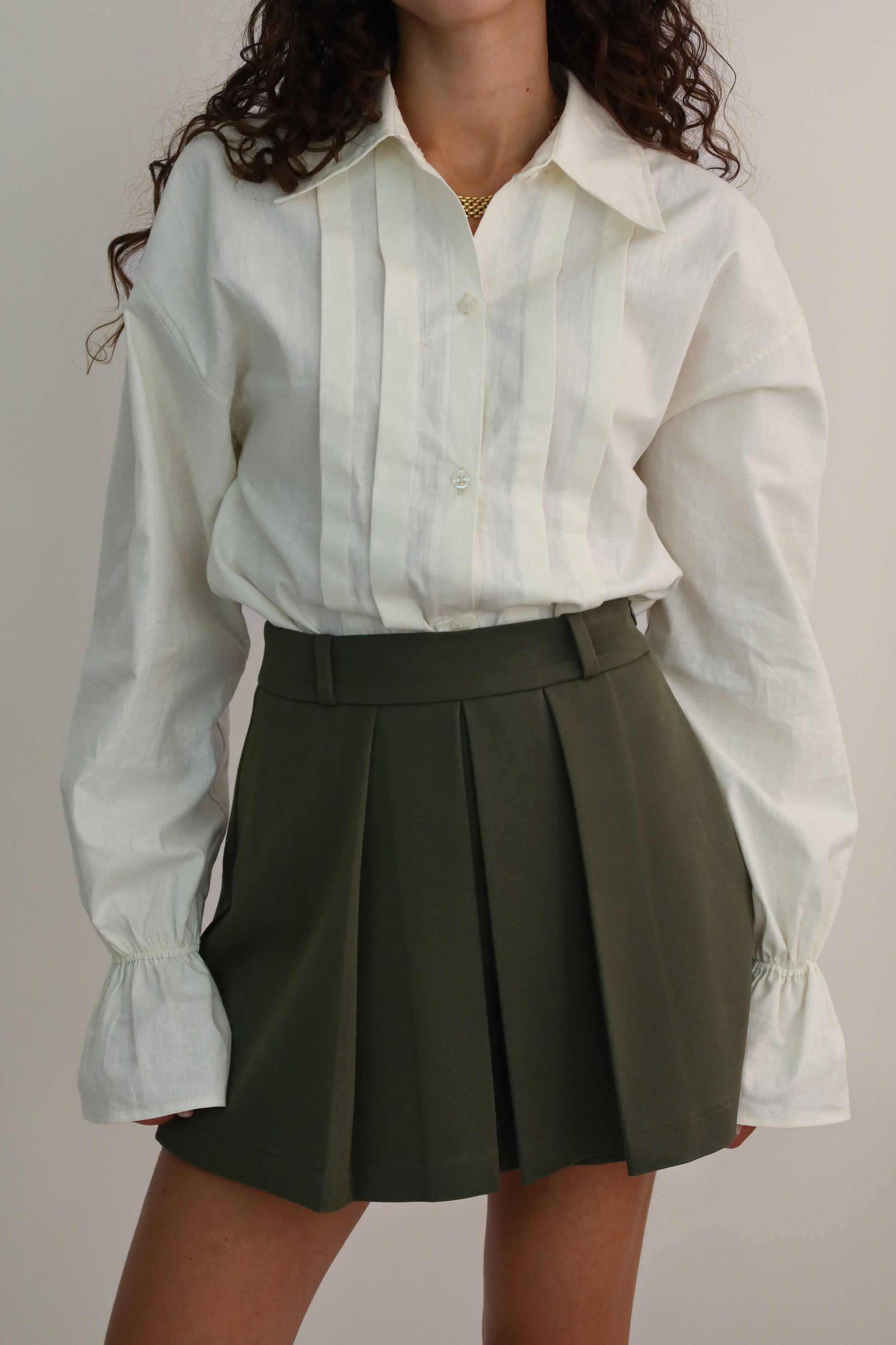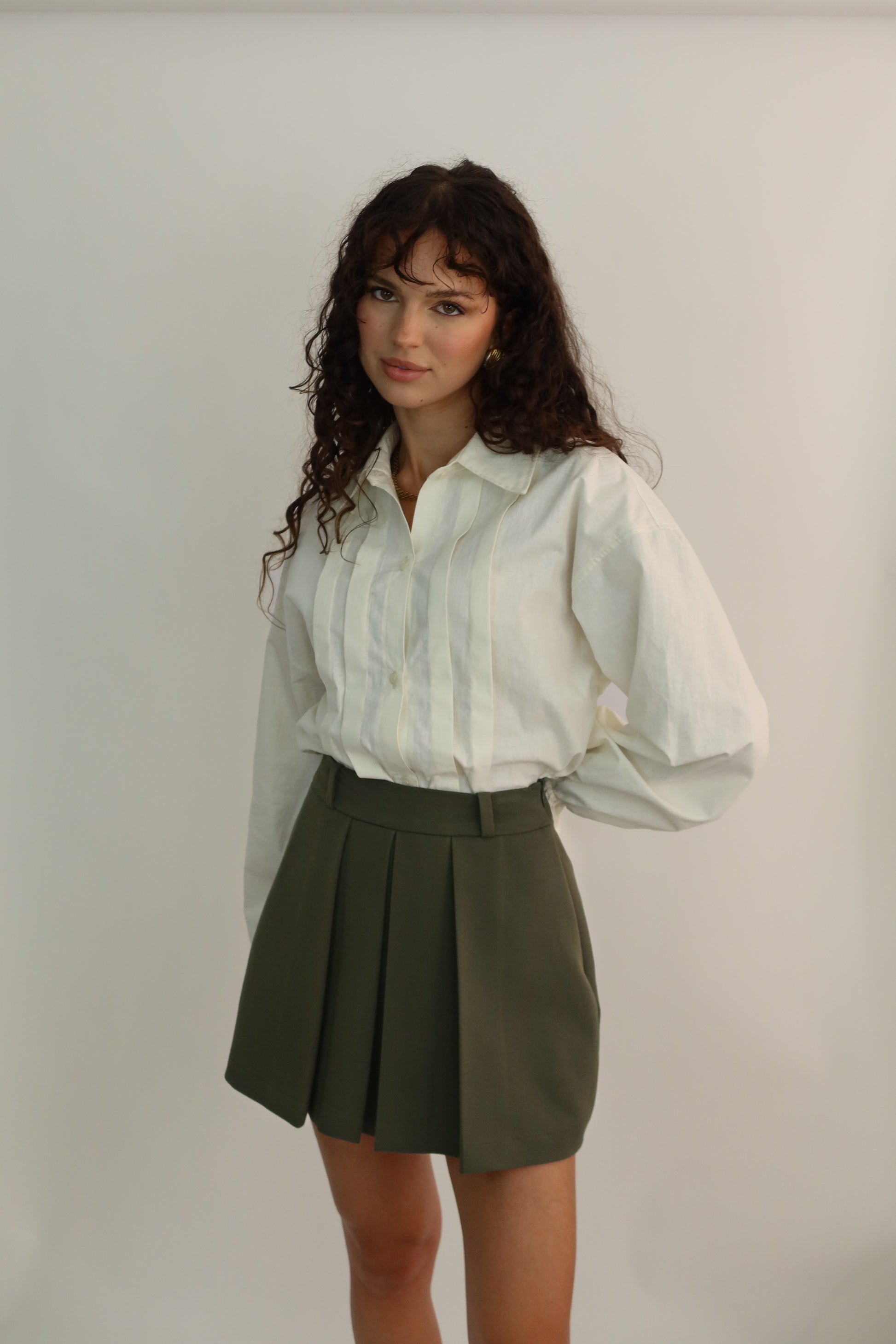 La jupe-short Millie fait son grand retour cette saison dans une nouvelle teinte kaki-marroné, parfaite pour la rentrée. Avec ses plissés élégants sur le devant et sa coupe taille haute, c'est un essentiel revisité facile à porter au quotidien.