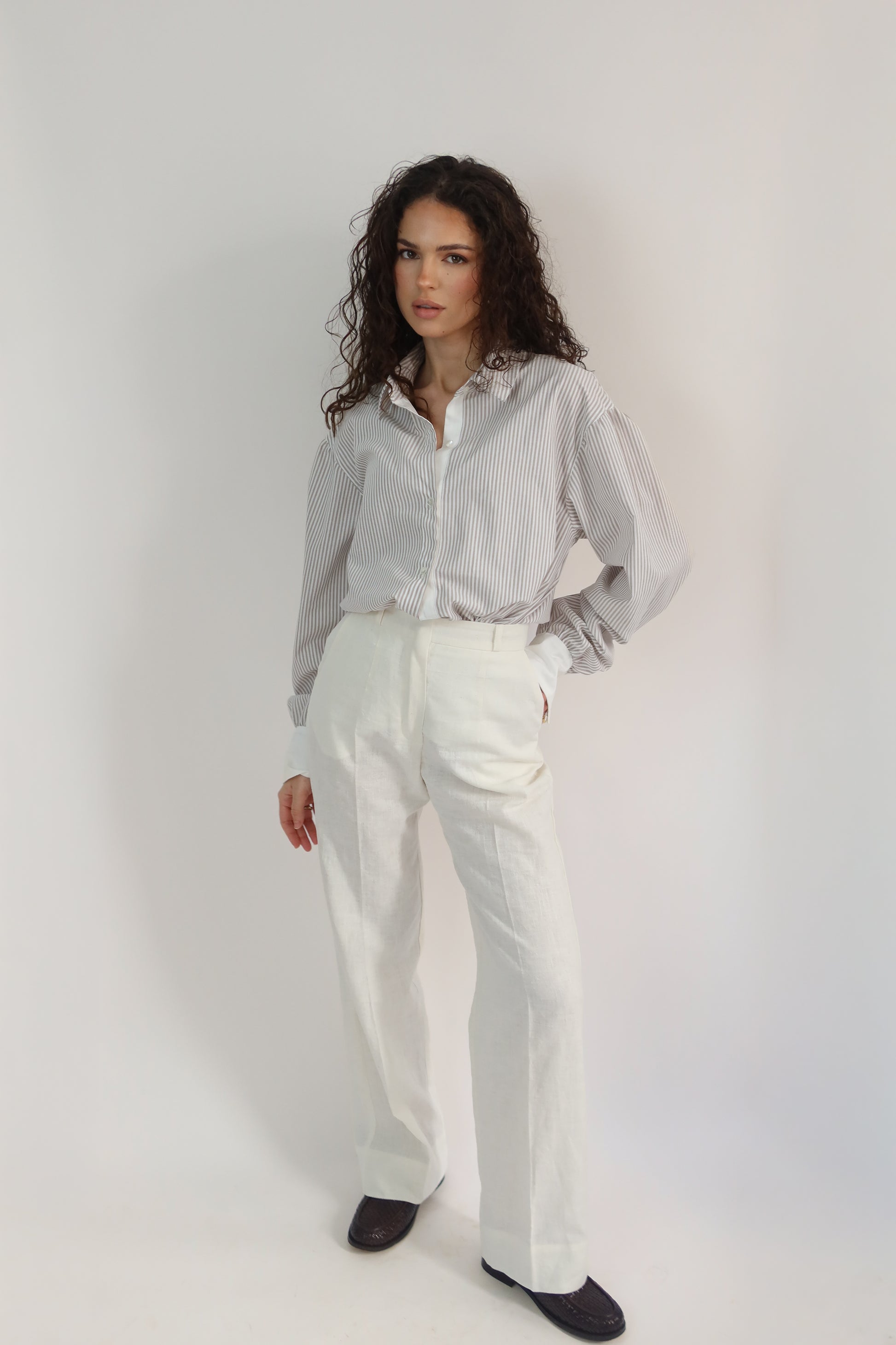 Un essentiel de la saison Printemps - Été, confectionné en lin et coton. Une matière choisie légèrement structurée pour éviter la transparence tout en restant agréable et légère à porter.